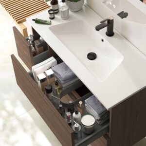 Por tanto, la selección de maderas con determinadas características intrínsecas puede marcar la diferencia, ya que las hacen menos susceptibles a los efectos dañinos del agua. Por ejemplo, el roble, conocido por su durabilidad y resistencia, es una opción popular debido a su capacidad para mantenerse estable ante la humedad. Asimismo, la teca es reconocida por su resistencia natural al agua y su hermoso veteado, es altamente valorada en el diseño de baños por su capacidad para resistir la humedad sin perder su belleza y durabilidad.