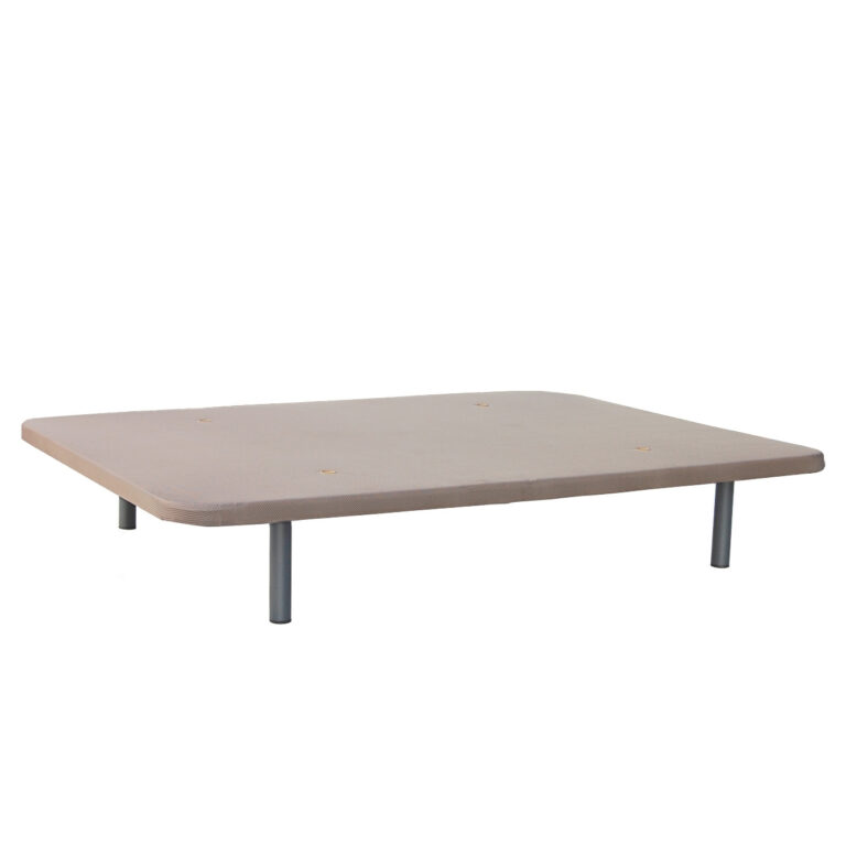 Base tapizada en tejido 3D de color Beige o Gris que garantiza su ventilación y transpirabilidad, valido para todo tipo de colchones. Se compone de un bastidor metálico con cinco travesaños, sobre el que se coloca un tablero perforado, proporcionando una máxima firmeza para que tu colchón multiplique sus cualidades. La estructura de 90 y 105 es para 6 patas, 135 y 150 necesitan 7 patas.