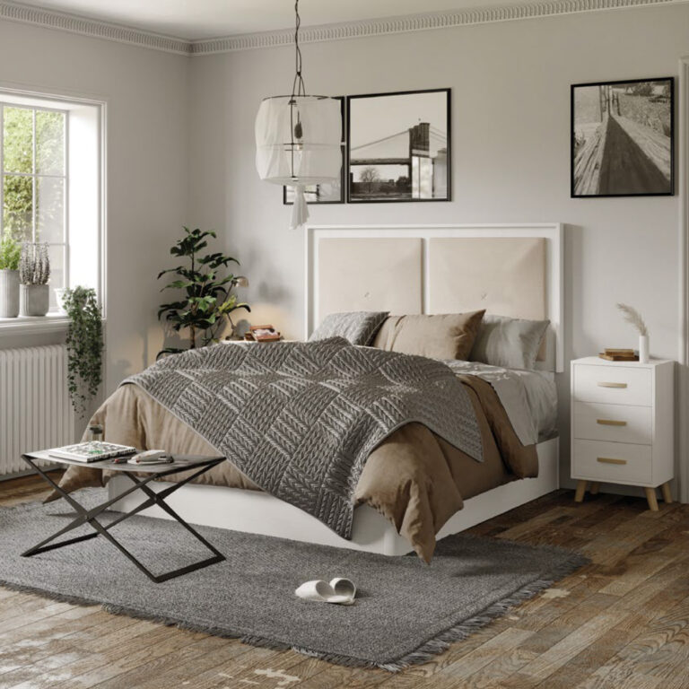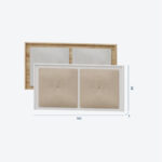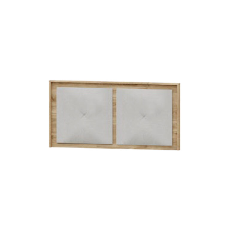Un diseño equilibrado que combina la calidez de la madera con la suavidad del tapizado. Sus dos amplios paneles acolchados ocupan gran parte de la superficie, dejando un marco perimetral que aporta un toque de estructura y elegancia. El contraste entre los materiales crea un efecto visual moderno y acogedor, ideal para transformar el dormitorio en un espacio de descanso con estilo.