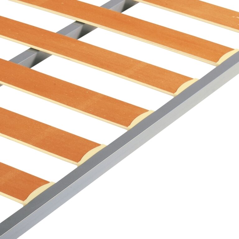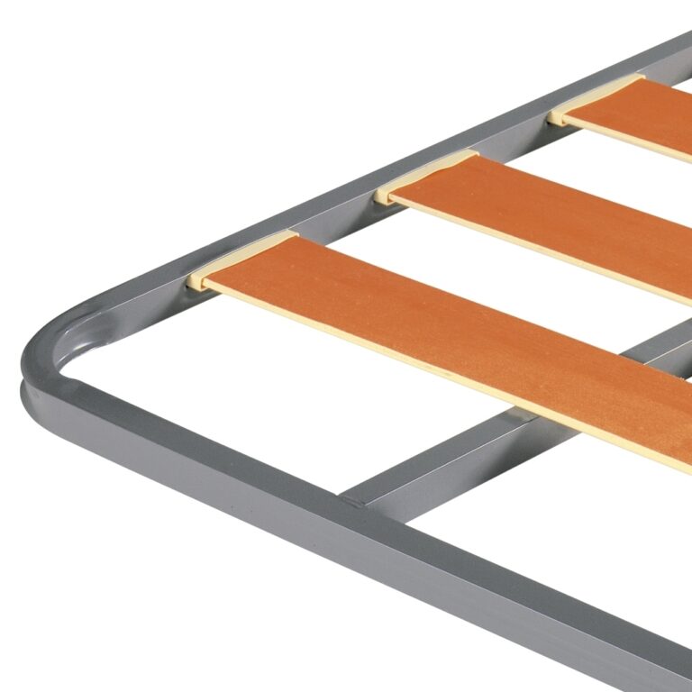 Somier de lamas de madera, está realizado con un bastidor de tubo acerado de 30 x 30 mm., acabado en pintura Epoxi Microtexturada en color gris. Dispone de un sistema de suspensión mediante lamas de madera de haya y abedul vaporizada y flexibles embutidas al bastidor con los tacos silencioso para evitar ruidos, un refuerzo central acerado en bastidor dependiendo de la medida. Valido para todo tipo de colchon. Patas no incluidas
